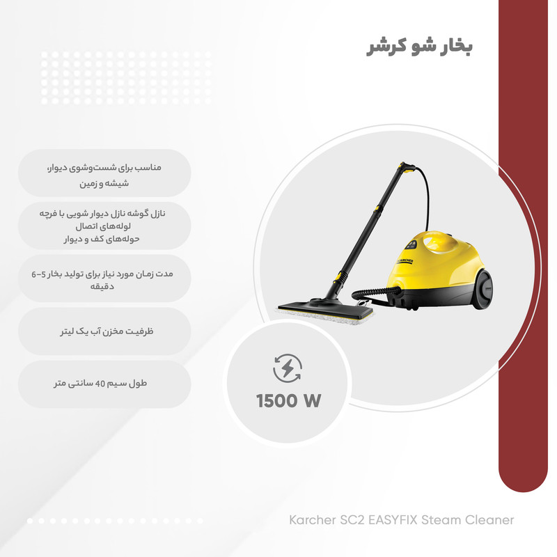پس از جارو کردن، استفاده از آب و تی کشیدن برای از بین بردن لکهها و جمعکردن خاک باقیمانده و نیز تمیز کردن نهایی محل کار و زندگی استفاده میشده است. استفاده از بخارآب به خاطر حرارت و قدرت نفوذی که دارد این روزها جای تی کشیدن را گرفته است. برای تمیز کردن با بخار، دستگاههای بخارشوی متنوعی به بازار عرضه شد. تبدیل هر چه سریعتر آب به بخار و قدرت متمرکز کردن بخار خروجی از نکاتی است که تولیدکنندگان مختلف در مورد آن حساسیت ویژهای به خرج میدهند تا محصولاتشان از بقیه بهتر شود. یکی از این بخار شویهای بسیار باکیفیت موجود در بازار، کرشر مدل SC2 EASYFIX است. وزن بسیار مناسب 2.9 کیلوگرمی این محصول سبب شده تا مشکلی در راستای جابهجایی برای کاربر بههمراه نداشته باشد. این محصول توانایی ذخیرهسازی حجم یک لیتر آب را دارد و تنها به 6.5 دقیقه زمان برای تولید بخار نیاز دارد. این محصول برای انواع سطوح هم مناسب بوده و عملکرد بسیار خوبی خواهد داشت.