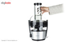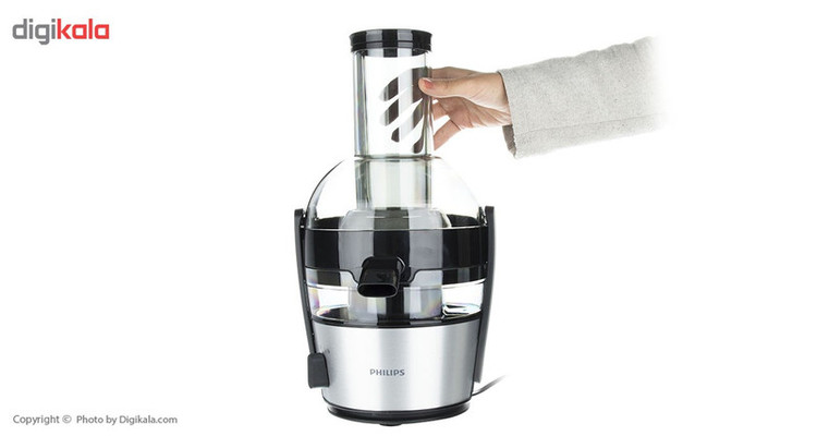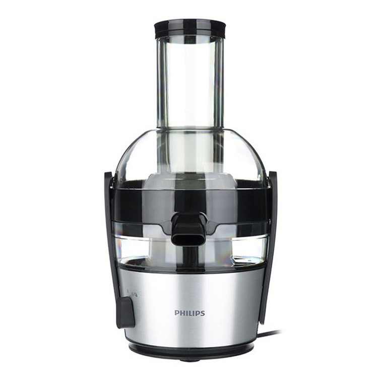 آبمیوه گیری فیلیپس مدل HR1863 از دستگاههای پرطرفدار فیلیپس است که باکیفیت بالایی ساختهشده است. این محصول با موتور قوی که دارد امکان آبگیری همه نوع میوهای را دارد. طراحی مدل HR1863 طوری است که ورودی میوهها در بالای دستگاه در وسط قرارگرفته است و میوه مستقیما به سمت تیغهها هدایت میشوند. چرخش سریع تیغههای بران، آبگیری را راحت و با دقت انجام میدهد. وجود فیلتر ریز در این دستگاه منجر به تولید آبمیوه ای صاف و گوارا میشود. به همراه این دستگاه یک پارچ نیز تحویل میشود که با طراحی خاصی که دارد به خروجی دستگاه متصل میشود تا بتوان مقدار بیشتری آبمیوه تهیه کرد تا راحتتر سرو شود. فیلیپس شرکت معتبری است که سالها به تولید لوازمخانگی برقی کوچک و بزرگ و لوازم برقی بهداشتی مانند ریشتراش و اپیلاتور مشغول است.
