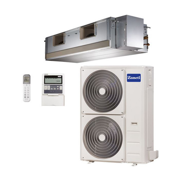 اکت اسپلیت زانتی 42000 ZMDA-48HO1SANA با ظرفیت 48000 BTU/hr و قابلیت ایجاد سرمایش و گرمایش، مناسب برای نصب در سقف کاذب ساختمانهای اداری و مسکونی در شرایط آب و هوایی معتدل می باشد.داکت اسپیلت مدل ZMDA-48HO1SANA زانتی دارای گاز R410A سازگار با محیط زیست با ویژگی های پیشرفته و طراحی متفکرانه است که به شما کمک می کند راحت تر نفس بکشید.فیلترهای داخلی به جذب ذرات گرد و غبار و آلودگی کمک می کند.داکت اسپلیتهای زانتی با رعایت اصول کیفیت و استانداردهای جهانی ساخته میشوند. به عبارتی، شرکت زانتی ایتالیا با بهکارگیری قطعات فنی روز دنیا موفق به ساخت محصولات باکیفیتی شده است. این تولید حرفهای نیز باعث قرارگیری محصولات زانتی در لیست پرفروشترین داکت اسپلیتهای بازار شده است. داکت اسپلیت 48000 زانتی مدل ZMDA-48HO1SANAراندمان بسیار بالایی دارد و کم مصرف است. این داکت اسپلیت حتی در زمان اوج گرما نیز عملکرد درخشانی داشته و خیلی خوب میتواند دمای هوا را کاهش دهد. همچنین، سیستم Turbo دستگاه به انتقال سریع هوای خنک در محیط کمک میکند. کم صدا و کم مصرف بودن نیز از دیگر مشخصات داکت اسپلیت زانتی است. به علاوه، امکان کنترل دستگاه از راه دور باعث کاربری آسان آن شده است.به طوری که دستگاه دارای سیستم WIFI می باشد که قادر است به شبکه اینترنت جهانی وصل شده و شما آن را از راه دور نیز کنترل کنید. به طور کلی، نصب، سرویس و نگهداری از داکت اسپلیت زانتی ساده و راحت است. از سایر امکانات و مشخصات آن میتوان به داشتن اواپراتور و کندانسور طلایی، فیلتر قابل شستشو، سیستم Auto Restart و… اشاره کرد. از این داکت اسپلیت پرقدرت میتوان در انواع پروژههای مسکونی، تجاری، اداری و… استفاده کرد. توجه داشته باشید که نوع برق مصرفی این مدل 3 فاز میباشد.