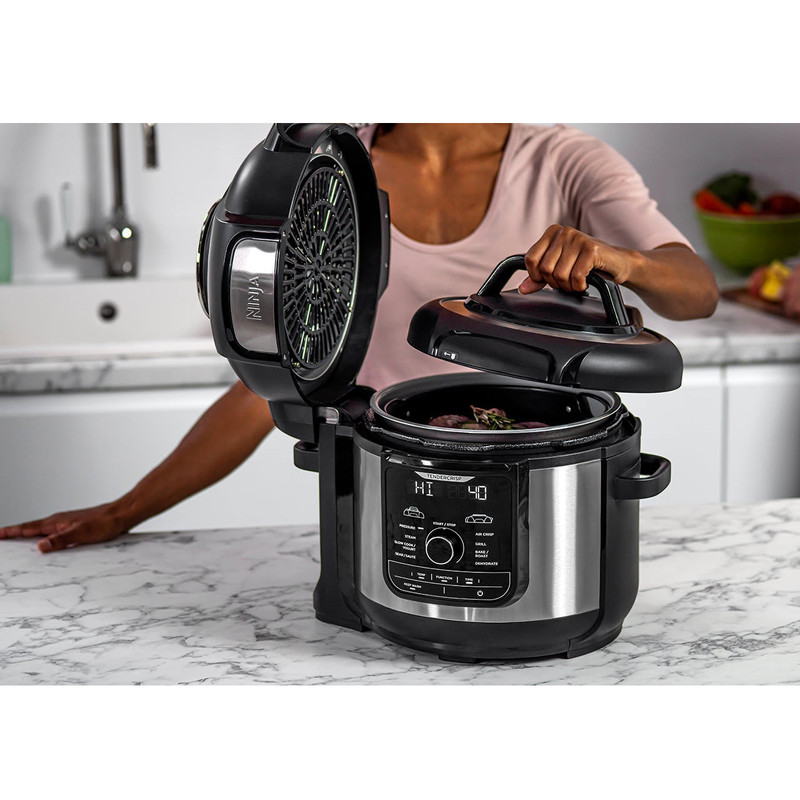 مولتی کوکر 9 در 1 Ninja Foodi MAX با 9 عملکرد باورنکردنی پخت و پز و ظرفیت بزرگ برای تغذیه کل خانواده، پختن انواع غذا، میان عده ها و دسرهای خوشمزه را سریع و آسان می کند. یک دستگاه که کارهای زیادی می کند! مهمانان خود را با 9 عملکرد پخت و پز در یک قابلمه تحت تاثیر قرار دهید، از جمله ( پخت تحت فشار، سرخ کردن با هوا، آرام پز، بخارپز، پخت/کباب کردن، سرخ کردن/تفت دهی، گریل، ماست و خشک کن میوه ). با Ninja Foodi MAX می توانید یک مرغ کامل 3 کیلوگرمی را بپزید و سپس سرخ کنید.