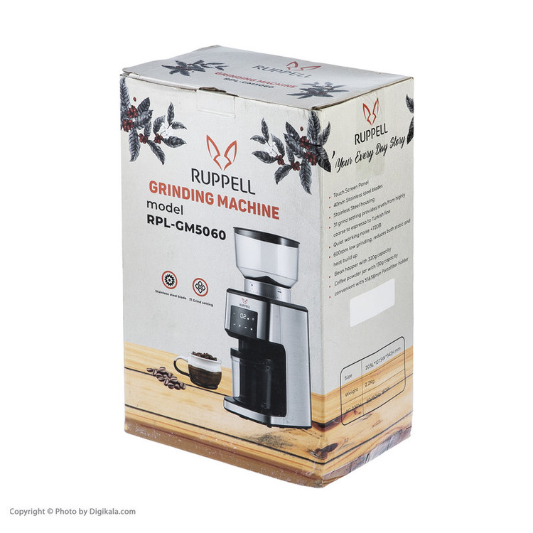 آسیاب قهوه روپل مدل RPL-GM5060 یکی دیگر از محصولات با کیفیت و تخصصی روپل در زمینه قهوه و تجهیزات میباشد که جهت مصارف خانگی و اداری، طراحی شده است. بدنه این آسیاب از ترکیب استیل ضد زنگ و پلاستیک فشرده ABS ساخته شده است. دارای موتور قدرتمند با توان 180 وات میباشد که هیچدانهی قهوهای توان ایستادن در مقابلش را ندارد. مهمترین وجه تمایز این آسیاب نسبت به مدلهای مشابه، استفاده از تیغه 40mm از جنس استیل ضدزنگ میباشد. بدین صورت که در حین آسیاب حرارت بین تیغه ها کنترل شده و آسیبی به دانههای قهوه در حال آسیاب نمیرساند و در نهایت شما با این دستگاه، قهوهای با کیفیت، خوش عطر و خوش طعم خواهید داشت. آسیاب قهوه روپل مدل RPL-GM5060 دارای دارای نمایشگر تمام لمسی ال ای دی و 31 درجه جهت آسیاب دانه رست شده برای تهیه قهوه در انواع دستگاه اسپرسوساز خانگی، صنعتی، موکاپات، فرنچپرس و… میباشد که با کالیبراسیون سیستمی و تجربه استفادهی مکرر میتوانید درجه دلخواه خود را بر اساس سلیقه و طعم به دست آورید. از ویژگی های مهم این آسیاب قهوه میتوان علاوه بر مخزن جداگانه جهت پودر قهوه به دو پایه ی نگهدارنده ی مخصوص دسته پرتافیلتر سایز 51 و 58 اشاره نمود که پرتافیلتر دستگاه اسپرسوساز به آن وصل میگردد و میتواند به طور مستقیم مقدار مورد نیاز قهوه ی آسیاب شده درون آن ریخته و پس از تمپ به دستگاه اسپرسوساز خود وصل نمایید.