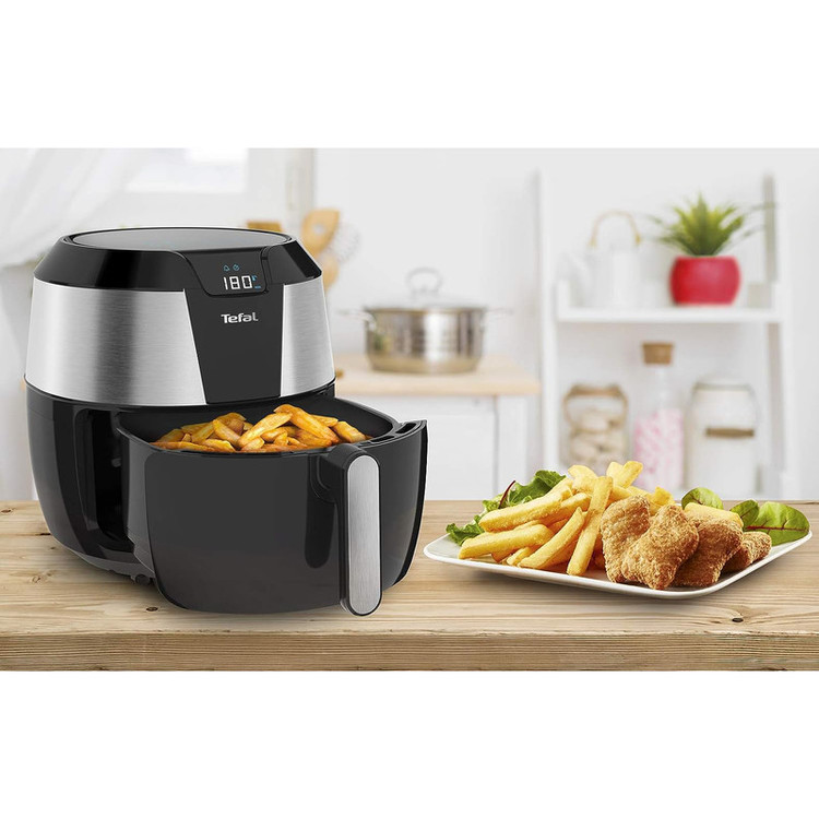 سرخ کن تفال مدل EY701 یک سرخ کن با ظرفیت 1.6 کیلوگرمی، قدرت بالا و داشتن برنامه پخت های مختلف است که میتوانید از آن برای تهیه غذا برای یک خانواده پر جمعیت 8-7 نفره استفاده کنید و از پخت و پز غذا با کمترین روغن و حتی بدون روغن لذت ببرید . این سرخ کن دارای قابلیت تنظیم دما است و میتوانید با توجه به مواد غذایی و مدت زمان پخت خود دمای دستگاه را بین 80 – 200 سانتی گراد به صورت دستی تنظیم کنید . همچنین سرخ کن تفال EY701 دارای 8 برنامه پخت پیش فرض است که می توان به برنامه پخت های سیب زمینی سرخ شده،ماهی، استیک و کباب اشاره کرد. دستگاه سرخ کن EY701 تفال با فناوری گردش هوای گرم (3 بعدی پالس هوا) غذا را آماده می کند و با کمترین میزان روغن می توانید لذیذ ترین غذا ها را آماده کنید . جنس مخزن از نوع تفلون نچسب است و به راحتی قابل شستشو در ماشین ظرفشویی است. جنس بدنه سرخ کن Tefal EY701 از نوع استیل ضد زنگ است و زیبایی خاصی دارد که میتوانید به راحتی با دکوراسیون منزل خود هماهنگ کنید. سرخ کن EY701 تفال تا 60 دقیقه قابلیت برنامه ریزی از طریق صفحه نمایش روی بدنه دستگاه را دارد و دستگاه به سیستم خاموشی خودکار نیز مجهز است و پس از پایان کار خود ، دستگاه به صورت خودکار خاموش می شود.