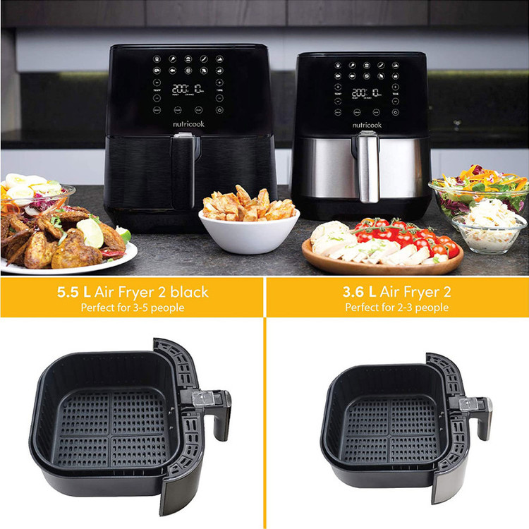 Quicker (سریعتر) ، Crispier (ترد تر) ، Healthier (سالم تر) این شعار سرخ کن های برند نوتریکوک است. سرخ کن جدید شرکت نوتریکوک با طراحی براق (مشکی برس خورده) با کیفیت برتر ، اندازه جمع و جور می تواند سرآشپز هر آشپزخانه ای شود. با کمک فناوری SmartTemp به طور خودکار دما را تنظیم می شود. سرخ کن AF205K دارای یادآوری مفید Shake است ، که به شما زمان تکان دادن محتویات را برای یکنواختی اطلاع می دهد. سبد سرخ شده با کیفیت عالی بدون PFOA ، بدون BPA ، با پوشش ضد چسب و قابل شستشو در ماشین ظرفشویی دارای فضای قابل استفاده بیشتری برای قرار دادن مواد غذایی ، بیشتر از یک سبد طرح گرد دارد.