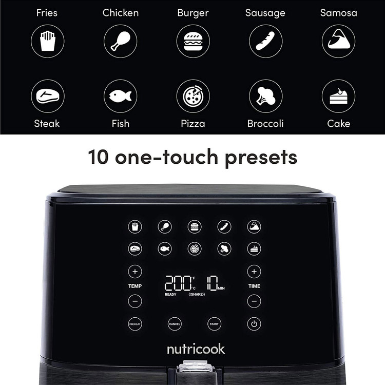 Quicker (سریعتر) ، Crispier (ترد تر) ، Healthier (سالم تر) این شعار سرخ کن های برند نوتریکوک است. سرخ کن جدید شرکت نوتریکوک با طراحی براق (مشکی برس خورده) با کیفیت برتر ، اندازه جمع و جور می تواند سرآشپز هر آشپزخانه ای شود. با کمک فناوری SmartTemp به طور خودکار دما را تنظیم می شود. سرخ کن AF205K دارای یادآوری مفید Shake است ، که به شما زمان تکان دادن محتویات را برای یکنواختی اطلاع می دهد. سبد سرخ شده با کیفیت عالی بدون PFOA ، بدون BPA ، با پوشش ضد چسب و قابل شستشو در ماشین ظرفشویی دارای فضای قابل استفاده بیشتری برای قرار دادن مواد غذایی ، بیشتر از یک سبد طرح گرد دارد.