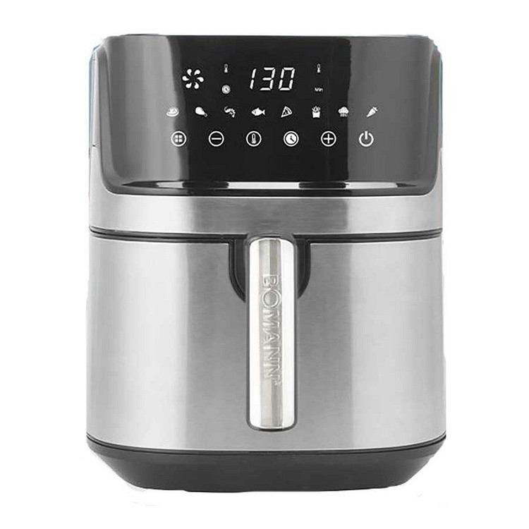 سرخ کن 7 لیتری بومن پخت و پز بدون داشتن ابزار مناسب کاری طاقت فرسا و زمانبر است. برای کسانی که به آشپزی علاقه دارند استفاده از سرخ کن، فر و مایکرویو را باید یاد بگیرند. به کمک این ابزارهاست که غذایی خوشمزه در زمانی کمتر آماده خواهد شد. سرخ کن رژیمی بومن مدل Bomann fryer AF7305SB، یک محصول تک، لاکچری و بسیار کارآمد است. در ادامه با هم با این محصول آشنا خواهیم شد. میتوانید لیست قیمت و خرید سرخ کن رژیمی بومن را اینجا مشاهده فرمایید. سرخ کن بومن AF7305SB، نمونه ی دیگری از محصولاتی است که شرکت بومن به بازار عرضه کرده است و برای آن از تکنولوژی ها و فناوری های منحصر به فردی استفاده کرده است. سرخ کن ها محصولاتی هستند که در جهت سرخ کردن مواد غذایی مورد استفاده قرار می گیرند و یکی از پر کاربرد ترین محصولات برای هر خانه ای می باشند. این سرخ کن 7 لیتری دارای توان مصرفی 1800وات است. سرخ کن بومن 7305، دارای پایه های ضدلغزش و بدنه ی کامل استیل می باشد و بر روی بدنه ی آن یک پنل لمسی تعبیه شده است که دارای 8 برنامه می باشد. از طریق این پنل می توان برای هر نوع سرخ کردن درجه حرارت مخصوص آن را تا 200 درجه سانتی گراد تنظیم کرد.