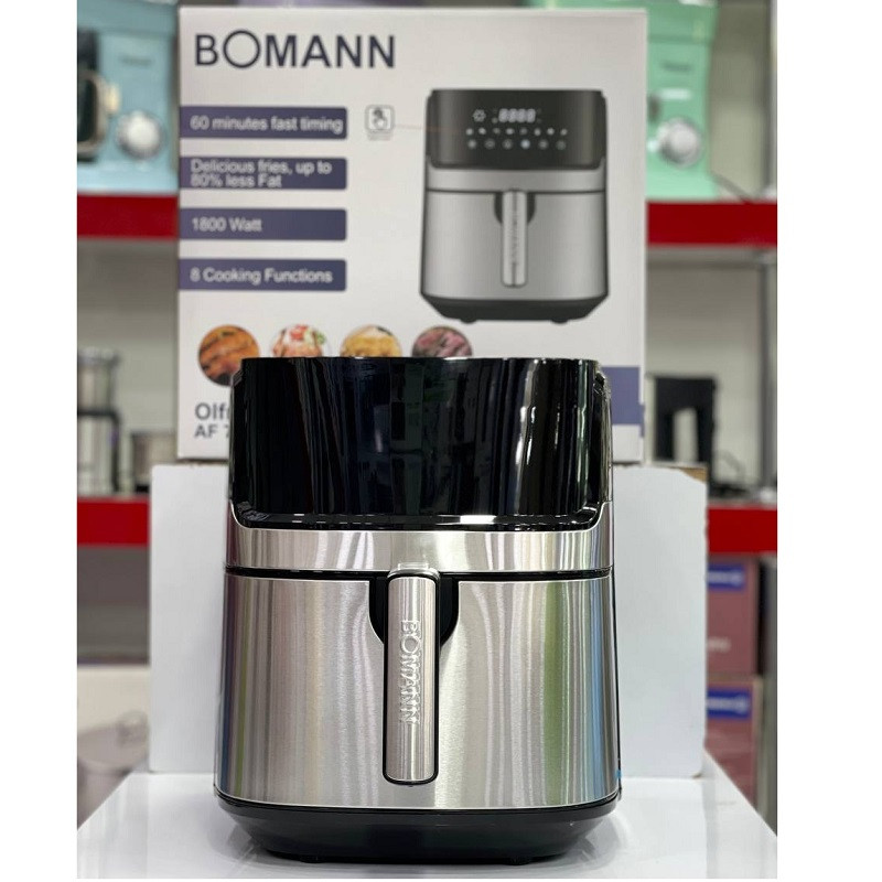 سرخ کن 7 لیتری بومن پخت و پز بدون داشتن ابزار مناسب کاری طاقت فرسا و زمانبر است. برای کسانی که به آشپزی علاقه دارند استفاده از سرخ کن، فر و مایکرویو را باید یاد بگیرند. به کمک این ابزارهاست که غذایی خوشمزه در زمانی کمتر آماده خواهد شد. سرخ کن رژیمی بومن مدل Bomann fryer AF7305SB، یک محصول تک، لاکچری و بسیار کارآمد است. در ادامه با هم با این محصول آشنا خواهیم شد. میتوانید لیست قیمت و خرید سرخ کن رژیمی بومن را اینجا مشاهده فرمایید. سرخ کن بومن AF7305SB، نمونه ی دیگری از محصولاتی است که شرکت بومن به بازار عرضه کرده است و برای آن از تکنولوژی ها و فناوری های منحصر به فردی استفاده کرده است. سرخ کن ها محصولاتی هستند که در جهت سرخ کردن مواد غذایی مورد استفاده قرار می گیرند و یکی از پر کاربرد ترین محصولات برای هر خانه ای می باشند. این سرخ کن 7 لیتری دارای توان مصرفی 1800وات است. سرخ کن بومن 7305، دارای پایه های ضدلغزش و بدنه ی کامل استیل می باشد و بر روی بدنه ی آن یک پنل لمسی تعبیه شده است که دارای 8 برنامه می باشد. از طریق این پنل می توان برای هر نوع سرخ کردن درجه حرارت مخصوص آن را تا 200 درجه سانتی گراد تنظیم کرد.
