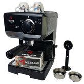 اسپرسوساز مباشی مدل Mebashi ECM2013 یکی از محصولات با کیفیت شرکت ژاپنی مباشی است که جهت مصارف خانگی، اداری، دکه های کوچک، مسافرخانه ها و دیگر محیط های کوچک طراحی و ساخته شده است. جنس بدنه دستگاه از پلاستیک فشرده ABS و با کیفیت ساخته شده، توان دستگاه 1140 وات و قدرت فشار دستگاه 15 بار است.حجم مخزن دستگاه 1.5 لیتر و از تلق شفاف در ساخت آن جهت مشاهده میزان آب داخل مخزن استفاده شده است.از جمله ویژگیهای دیگر دستگاه بویلر ساخته شده از آلیاژ آلومینیوم، سینی چکه گیر با قابلیت جدا شدن جهت تمیز کاری آسان، نازل بخار با قابلیت چرخش جهت فوم گیری آسان همچنین سر نازل با امکان جدا شدن جهت شستشو، سیستم کنترل فشار و حرارت و صفحه گرم نگه داشتن فنجان می باشد.دستگاه مجهز به دو فیلتر تک و دو کاپ جهت عصاره گیری قهوه است. همراه این دستگاه دو عدد فنجان قهوه خوری سرامیکی برند مباشی نیز توسط شرکت مباشی ارائه شده که بسیار جذاب و کاربردی است.جهت تهیه اسپرسو ابتدا آب تصفیه شده را داخل مخزن نهایتا تا زیر خط MAX ریخته و دستگاه را روشن کنید و منتظر بمانید تا دستگاه گرم شود به محضی که چراغ دماسنج روشن شد دستگاه آماده عصاره گیری است در این حالت پودر قهوه را داخل فیلتر زیر خط MAX ریخته و آن را توسط تمپر به میزان مناسب بکوبید سپس پودرهای اضافه را از اطراف فیلتر با دست تمیز کنید و دسته را در جای خود نصب کرده و کلید چرخشی را به سمت چپ (شکل فنجان یا حالت عصاره گیری) بچرخانید تا عملیات عصاره گیری آغاز شود دقت داشته باشید قبل از شروع عصاره گیری کلید فشاری سمت چپ در حالت بیرون یعنی تهیه اسپرسو قرار داشته باشد.جهت تهیه اسپرسو با عطر و خامه عالی به دو عامل 1-درجه آسیاب قهوه (ریزی و زبری) و 2-میزان فشار هنگام تمپ کردن بستگی دارد که این میزان بسته به نوع و قدرت دستگاه متفاوت است که بعد از مدتی کارکرد به صورت تجربی درجه آسیاب و میزان فشار برای دستگاه مورد نظر را یاد خواهید گرفت.