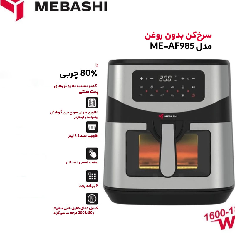 دستهبندی: سرخ کننوع سرخ کن: هواپز (بدون روغن)ابعاد: 30x30x30 سانتیمتروزن: 5 کیلوگرمطول سیم: 90 سانتی متررنگ : استیلنمایش بیشتر