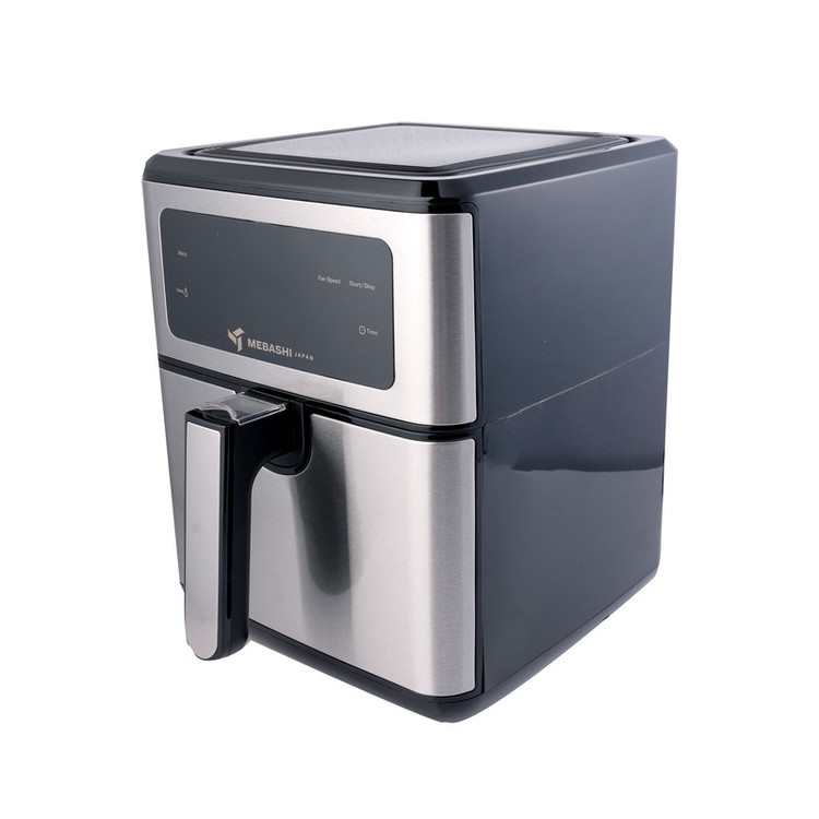 سرخ کن بدون روغن مباشی مدل ME-AF983 با قدرت فوق العاده 1550تا 1850 وات، امکانات متنوع و پیشرفته یکی از محصولات حرفه ای مباشی بوده که با سرخ کردن مواد غذایی بدون روغن و با هوای داغ تجربه لذت بخش و جدیدی از پخت غذاهای سالم و خوشمزه را برایتان به ارمغان می آورد. سرخ کردن سیب زمینی، انواع گوشت، مرغ، ماهی، میگو، جوجه، همبرگر، استیک، اسنک و… از جمله غذاهای خوشمزه ای است که می توان با این محصول فوق العاده آماده کرد. غذاهای سرخ شده توسط این دستگاه از بیرون ترد و از داخل بافت نرمی دارند. این سرخ کن بدون روغن یک پیشنهاد عالی برای شماست که به فکر استفاده از غذاهای رژیمی هستید و می خواهید در شرایط سالم تری غذاهایتان را طبخ و آماده کنید. سرخ کن مباشی 983 با ظرفیت 5.5 لیتر که حجم نسبتا خوبی است در هر بار مواد غذایی زیادی را سرخ و چیبسی می کند. بدون این که نیاز باشد ساعت ها پای گاز بایستید. به لطف 16 برنامه پخت پیش فرض می توانید انواع غذاها را تهیه کنید و سفره هایتان را متنوع و رنگی تر کنید. همچنین می توانید مهمانی ها و دورهمی های جذاب تری داشته باشید. همچنین از این سرخ کن می توان برای یخ زدایی و گرم کردن غذاها نیز استفاده نمود. سرخ کن مباشی بعد از پخت غذا به صورت خودکار خاموش شده که این ویژگی موجب افزایش طول عمر دستگاه می شود. از دیگر ویژگی های خوب این محصول می توان به اشاره کرد: قابلیت تنظیم دما, فن خنک کننده با سه درجه چرخش, پخت به کمک سیستم گردش هوای سریع, زمان پخت تا 60 دقیقه, سیستم ایمنی در برابر حرارت بالا و صفحه کاربری کاملا دیجیتال و لمسی. بر روی بدنه صفحه نمایش دیجیتالی و کاملا لمسی تعبیه شده که انتخاب پارامترهای پخت ایده آل برای غذا را آسان کرده است. دسته روی بدنه نیز جهت جلو عقب راندن سبد کشویی سرخ کن کاربرد دارد.