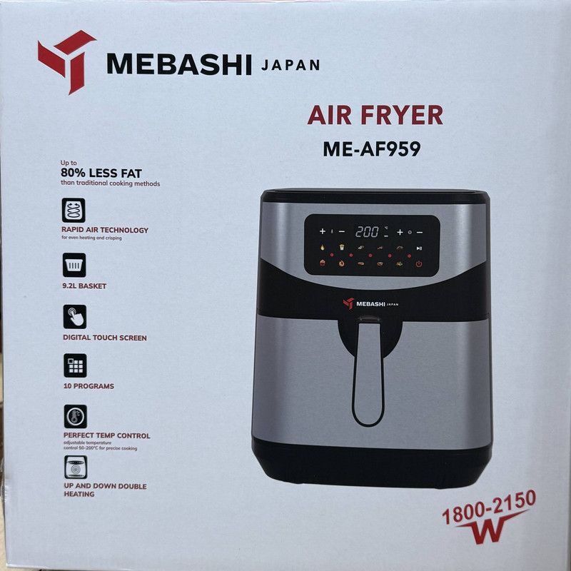 جدیدترین سرخکن برند مباشی ژاپن ، مدل AF959 که هم طراحی زیبایی داره هم کیفیت بسیار بالایی داره ، توان دستگاه 1800 تا 2150 وات دارد که بینظیر است.ظرفیت بسکت این سرخ کن 9.2 لیتری است و مانیتور دستگاه به صورت لمسی است.این دستگاه 10 برنامه از پیش تعیین شده دارد که به صورت پیش فرض برای درست کردن مرغ و ماهی و……می باشد. همچنین از سرخ کن بدون روغن مباشی می توان برای یخ زدایی و گرم کردن غذا ها نیز استفاده کرد.نگران پخت سریع و یا دیر هنگام انواع غذا ها در این دستگاه نباشید. شما می توانید از تایمر این دستگاه در برنامه های مختلف آن استفاده کنید. همچنین سرخ کن مباشی دارای تایمر مخصوص برای تنظیم دمای پخت می باشد.دستگاه پس از پخت غذا به صورت اتوماتیک خاموش می شود.و این ویژگی باعث افزایش عمر دستگاه می گردد. بسکت سرخ کن مباشی را می توانید به راحتی در ماشین ظرف شویی بشویید. قابلیتی که در کمتر دستگاه مشابهی وجود دارد. البته جنس مخزن این دستگاه از تفلون نسوز بوده و غذا به آن نمی چسبد. با این حال شست و شوی آن در صورت نیاز کار بسیار راحتی است.