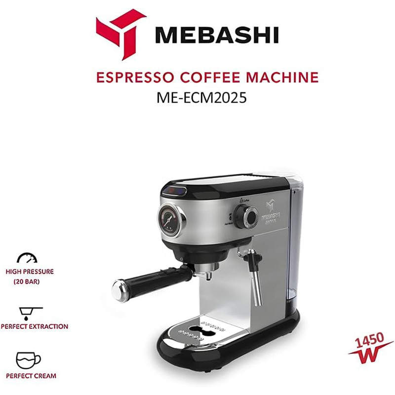 اسپرسوساز MEBASHI ME-ECM2025 با فشار ۲۰ بار و ظرفیت ۱ لیتر، گزینهای مناسب برای علاقمندان به قهوه است که به دنبال تجربهای حرفهای در خانه هستند. این دستگاه با پمپ فشار بالا، قهوهای غلیظ و معطر تولید میکند که طعمی مشابه کافههای حرفهای دارد. مخزن آب شفاف و قابل جداسازی آن امکان مشاهده آسان سطح آب را فراهم میآورد و به راحتی میتوان آن را پر کرد. سیستم نشانگر فشار در این دستگاه، اطلاعات دقیقی از فشار فرآیند دمآوری ارائه میدهد که به شما امکان میدهد از دقت استخراج قهوه اطمینان حاصل کنید. با قابلیت تنظیم دستی میزان بخار، میتوانید به راحتی فوم شیر تهیه کرده و نوشیدنیهایی مانند کاپوچینو و کافه لاته آماده کنید. صفحه گرمکن فنجان در قسمت بالای دستگاه، فنجانها را در دمای مناسب نگه میدارد تا قهوه در دمای ایدهآل سرو شود. علاوه بر این، عملکرد خودکار خاموشی و ویژگیهای صرفهجویی در انرژی، این دستگاه را به انتخابی ایمن و کارآمد تبدیل کرده است. کنترل ساده و پنل روشن آن باعث میشود استفاده از دستگاه بسیار آسان و لذتبخش باشد.